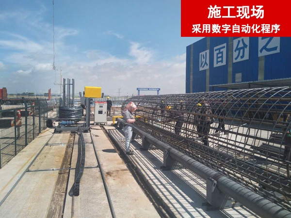 2、鋼筋籠12米以上,或者單節鋼筋籠較重時,骨架中間加焊1、2圈纏繞筋替代第三個過渡箍。或直接中間開始繞筋,另半截籠前面向中間纏繞連接完成。所以三個過渡箍的中間一個箍應置放在中間靠后面的地方,借以減少沖擊振動。退出輥輪并過渡到后面輥輪的方法--將過渡箍向后面推壓,讓過渡箍順膠輥旋轉到上面直到全部退出。準備臺架;若采用骨架直接滾進輥輪內檔(小型鋼筋籠),骨架制作臺架高度與設備同高。